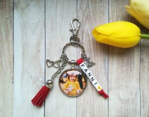Fényképes kulcstartók saját fotóval, választható díszekkel.